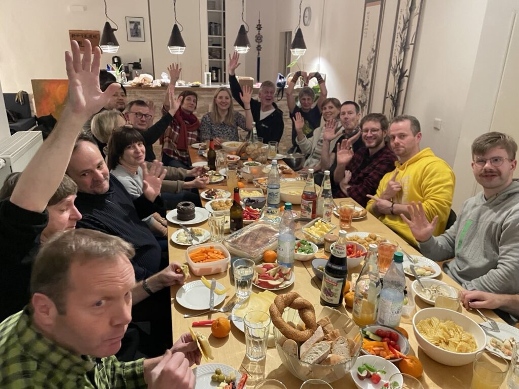 Jede und jeder brachte etwas Leckeres zum Essen mit, sodass sich schnell ein reichhaltiges Buffet mit vielen selbstgemachten Köstlichkeiten füllte. Bei Gesprächen, Lachen und kleinen Geschenken wurde wieder deutlich, wie stark unsere Gemeinschaft auch in diesem Jahr ist.